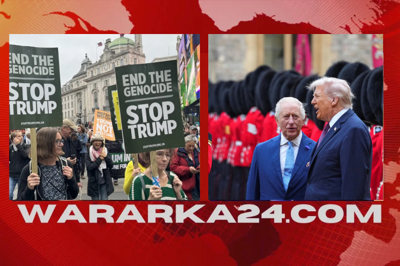 London – Kumanaan qof ayaa maanta bannaanbax ka dhigay bartamaha London, iyagoo muujinaya carada ay ka qabaan booqashada Madaxweyne Donald Trump oo u yimid magaalada safar rasmi ah.