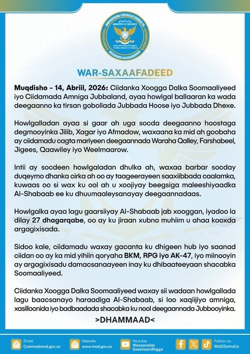 Ciidamada dowladda iyo kuwa Jubbaland ayaa sheegay inay sii wadi doonaan howlgalada lagu baacsanayo haraadiga kooxaha hubeysan, si loo xaqiijiyo amniga iyo xasilloonida deegaannada Jubbooyinka.