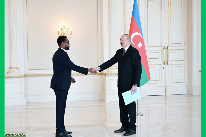 Wararka24: Safiirka Jamhuuriyadda Federaalka Soomaaliya u fadhiya Azerbaijan, Mudane Cabdinuur Daahir Fiidow, ayaa si rasmi ah waraaqihiisa aqoonsiga safiirnimo ugu gudbiyay Madaxweynaha dalkaas Ilham Aliyev, sida lagu shaaciyay war rasmi ah.