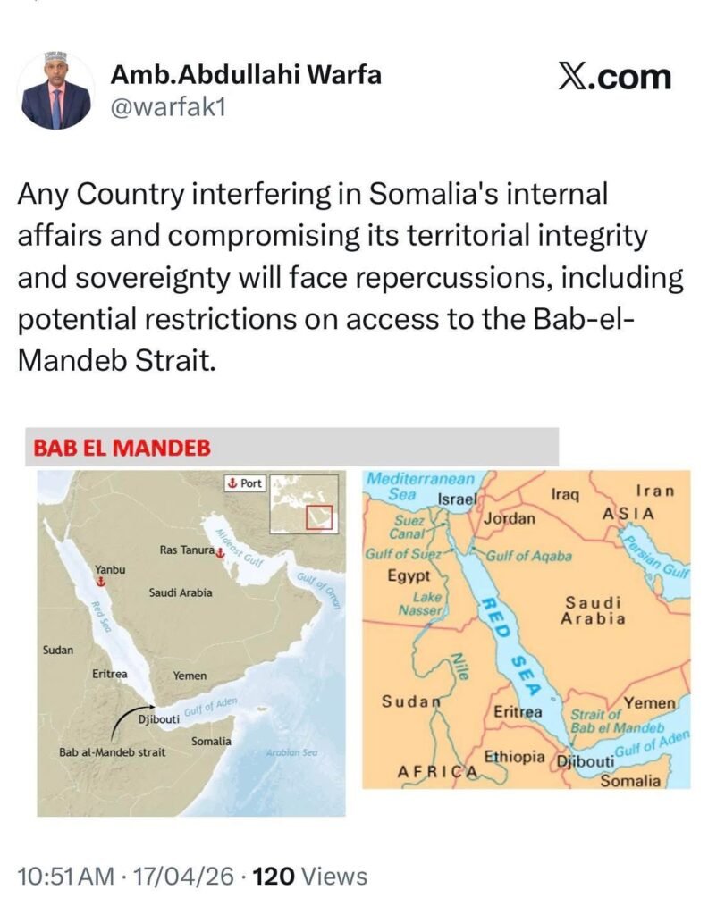 Danjiraha ayaa si gaar ah uga hadlay magacaabista ay Israa’iil sheegtay inay safiir ugu soo dirtay Somaliland, taas oo Dowladda Federaalka Soomaaliya ku tilmaantay mid dhaawacaysa qaranimada. Qoraal uu ku baahiyay bartiisa X ayuu ku sheegay in fal kasta oo faragelin ah uu la kulmi doono jawaab adag.
