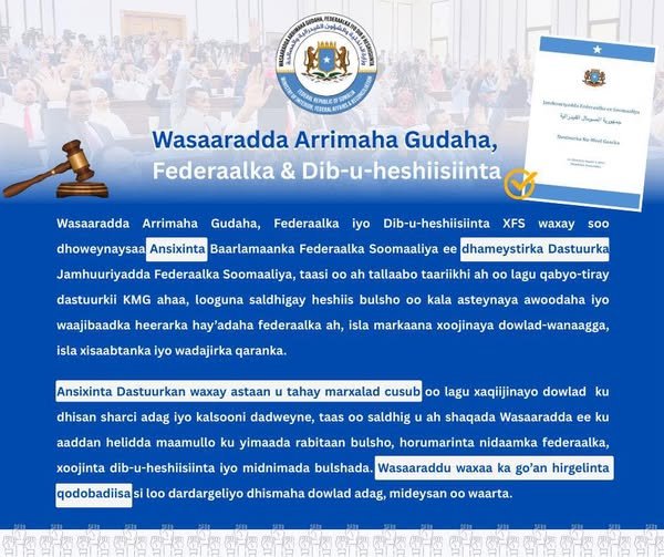 Wasaaraddu waxay sheegtay in tallaabadan ay tahay mid taariikhi ah oo lagu soo afjaray marxaladdii dastuurka ku-meelgaarka ahaa, isla markaana lagu saldhigay heshiis bulsho oo qeexaya awoodaha iyo waajibaadka hay’adaha federaalka iyo kuwa dowlad goboleedyada.