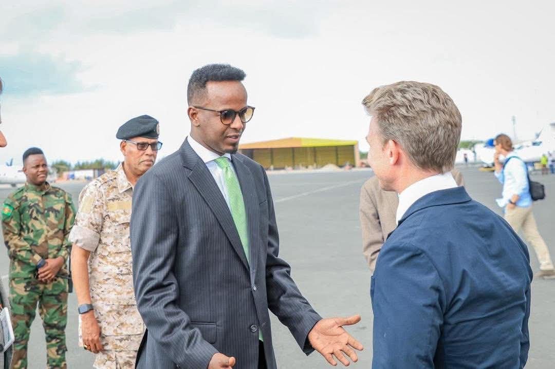 Muqdisho – Wasiiru Dowlaha Wasaaradda Gaashandhiga Soomaaliya, Cumar Cali Cabdi, iyo Taliye ku xigeenka Ciidanka Xoogga Dalka, S/Guuto Maday Nuurey Ufurow, ayaa maanta ku soo dhaweeyay garoonka Aadan Cadde Wasiirka Gaashaandhigga Boqortooyada Sweden, Pål Jonson, iyo wafdi uu hoggaaminayo.